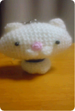 白猫のストラップです。後ろが意外とキュートw